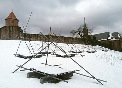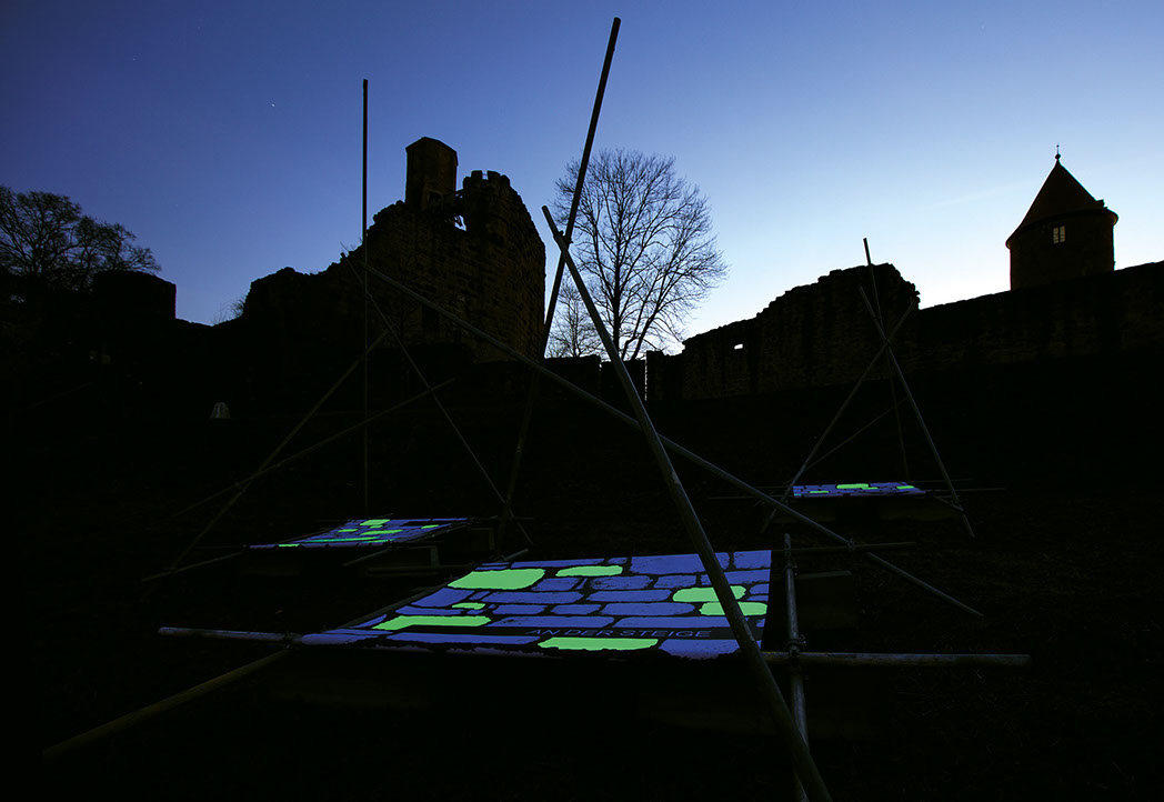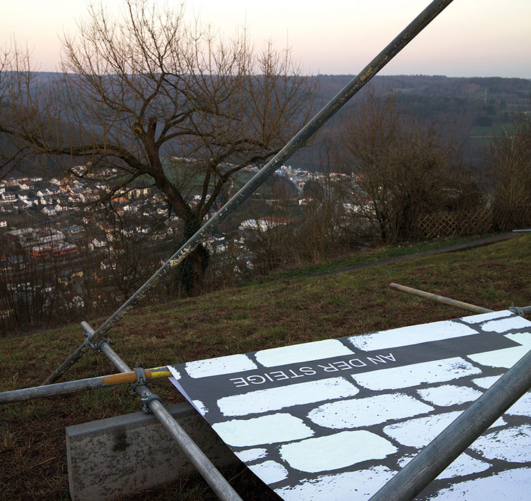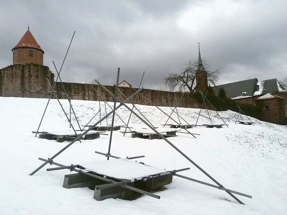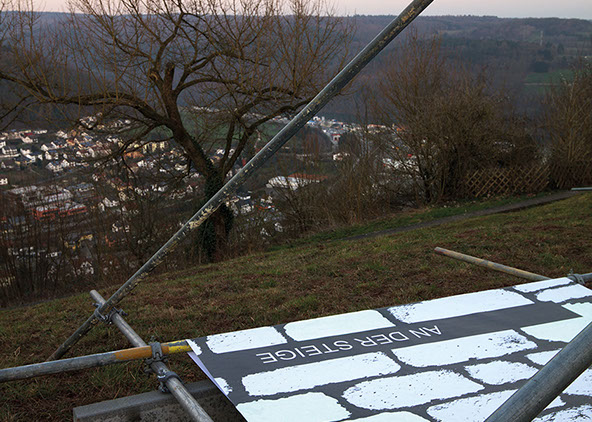 Entwurf LETZTER STAND SCHWEBEND ... von Steinen und Mauern auf dem Dilsberg, von Ulrike Thiele