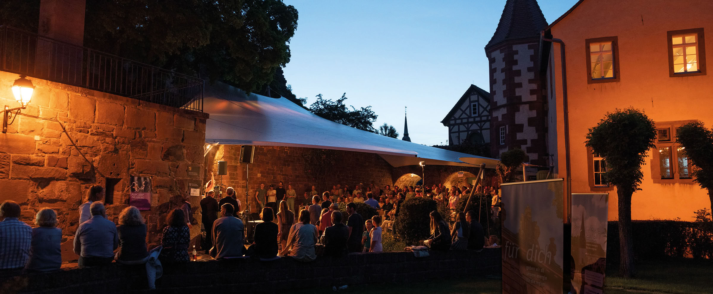 Mit „Music & Poetry“ gab es im September 2024 wieder ein spätsommerliches Highlight voller geistreicher Poesie und mitreißender Pop-Musik, anstatt im Pfarrgarten zum ersten Mal im Hof des Kommandantenhauses Dilsberg.