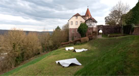 Die künstlerische „Intervention“ Kunst am Grünen Hang findet zum fünften Mal in dem architekturhistorisch bedeutenden, regionaltouristisch frequentierten und denkmalgeschützten Landschaftsraum Dilsberg mit dem Kommandantenhaus als Kulisse statt, sie ist zeitlich begrenzt und wird von der Mannheimer Künstlerin Jutta Steudle „bespielt“.