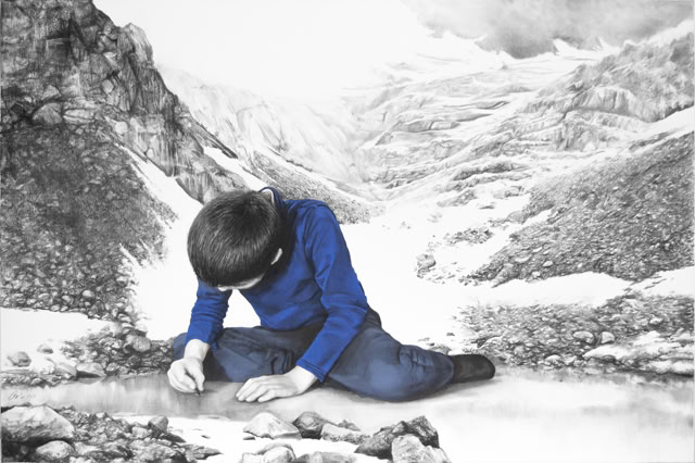 Gletschersee, 2023, Kohle, Acryl auf Leinwand