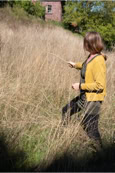 Mit der Ihrer Arbeit bezog sich die Künstlerin auf eine Sage. Diese besagt, dass sich einst Bauern auf dem Dilsberg einem militärischen Angriff erwehren konnten, indem sie von der Stadtmauer Bienenkörbe ausschütteten und die wild gewordenen Bienen die Angreifer erfolgreich in die Flucht schlugen. »Der Leitgedanke für meine plastische Arbeit«, so die Künstlerin, »ist also der Moment der Abwehr, von (feindlichen) Angriffen, dieses gemeinsame Ausschwärmen, raus aus den Bienenkörben und das in großer Anzahl.« Aus drei Öffnungen der Stadtmauer treten dicht gebündelte, aus Messingdraht bestehende Linien hervor. In leichten Schwüngen ergießen sich die Linienströme über eine Länge von über dreißig Metern über den Abhang. Eingewoben in die Gräser simulieren die matt glänzenden, honigfarbigen Messingdrähte in welligen Auf- und Abbewegungen die Fluglinien des gereizten und zum Angriff übergehenden Bienenschwarms. In einer reduzierten, geradezu minimalistisch anmutenden Bildsprache formieren sich die honigfarbigen, matt glänzenden Drähte zu einer flutenden, rhythmisch gegliederten Gesamtbewegung.