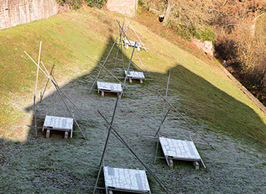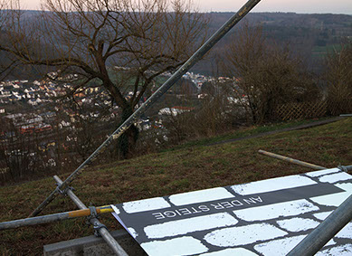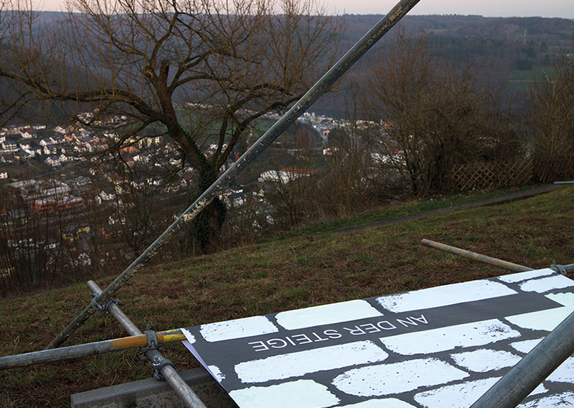 Entwurf LETZTER STAND SCHWEBEND ... von Steinen und Mauern auf dem Dilsberg, von Ulrike Thiele