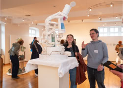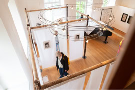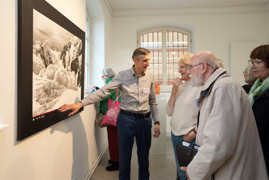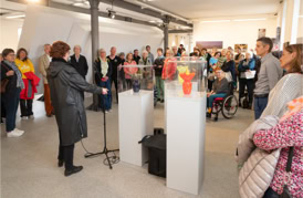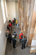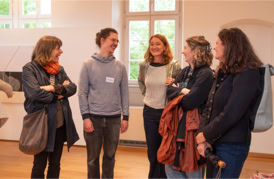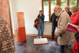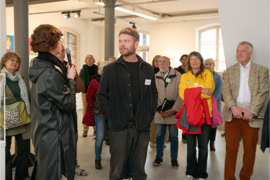 Die Eröffnung startete in der Ehemaligen Synagoge, wo Anna Siebert mit der Arbeit „Beweg dich langsam“ eine raumgreifende Installation aus großflächigen Papierbahnen präsentierte, die einen begehbaren Raum schuf, der in seiner beeindruckenden Größe und Beschaffenheit die Betrachtenden zu einem einzigartigen Raumerlebnis einlud. Anschließend ging es in die Alte Apotheke, wo Lena Reutter malerisch alte Fotos poetisch in eine märchenhafte Gegenwart brachte. Elke Weickelt stellte humorvoll Tier- und Menschenporträts gegenüber, Katrin Nicklas zeigte eine installative Arbeit aus verschieden Materialien, mit denen sie zwischen Raum und Fläche balancierte und Marianne Kaerner schuf eine Verbindung abstrakter und realistischer Elemente in ihren Landschaften und Interieurs.